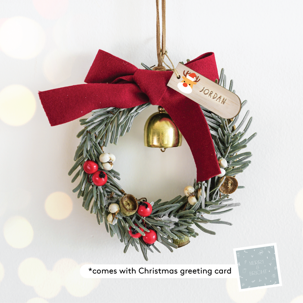The Crimson Berry Bento Wreath captures the warmth of Christmas with rich berry tones and festive charm. Petite in size yet full of detail, this handcrafted wreath is perfect for gifting or adorning your child’s room or nursery. Each piece includes a personalised name tag and greeting card, making it a meaningful keepsake to celebrate the season.
