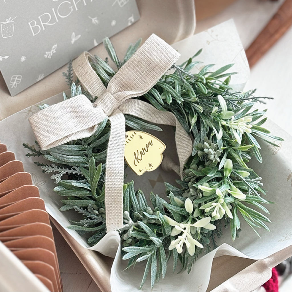 Delicate and refined, the Noel Whisper Bento Wreath embodies the quiet beauty of the festive season. Its petite form and gentle tones make it a lovely accent for your child’s room, nursery or as a thoughtful Christmas gift. Each wreath includes a personalised name tag and greeting card, crafted with care to add a touch of meaning and charm.